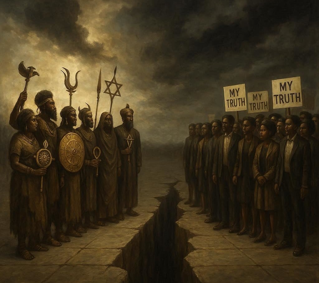 La vision du monde animiste a historiquement échoué parce que sa morale clanique était incapable de fonder une dignité humaine universelle, ce qui a ouvert la porte au Maafa. Le postmodernisme est la version globalisée de cette spiritualité clanique. Le "clan" n'est plus la tribu, mais le groupe identitaire (basé sur le genre, la race, etc.). La dynamique est la même : une allégeance à la "vérité" de son propre groupe et une lutte de pouvoir pour imposer son récit.