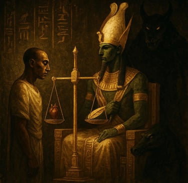 Le point culminant de ce voyage post-mortem, décrit en détail dans la formule 125 du Livre des Morts, est la cérémonie de la Pesée du Cœur. L'âme du défunt est jugée par Osiris. Son cœur est pesé sur une balance contre la plume de Maât (la vérité, la justice). Le verdict est binaire et sans appel : si le cœur est léger, le défunt accède à la vie éternelle dans le Champ des Roseaux. S'il est lourd de péchés, il est dévoré par la déesse Ammout, et c'est l'anéantissement final, la "seconde mort".Conclusion de la Voie du Nil : La spiritualité égyptienne est une quête de salut individuel et définitif. Elle ne connaît pas de "deuxième chance", pas de retour sur terre pour corriger ses erreurs.