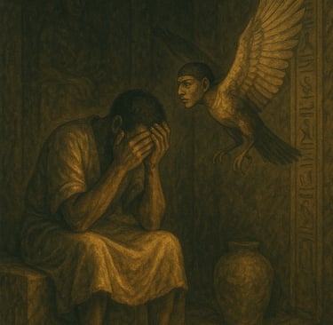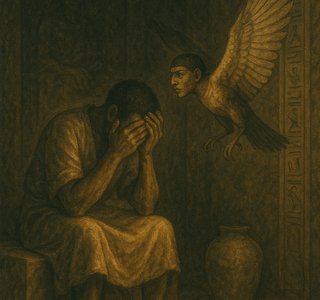Lorsque la foi en l'ordre éternel a été ébranlée par le chaos politique de la Première Période Intermédiaire (~2180-2055 av. J.-C.), la réaction n'a pas été de se tourner vers un espoir de réincarnation, mais vers un profond désespoir existentiel. Le texte le plus célèbre de cette époque, "Le Dialogue d'un homme avec son Ba" (souvent appelé "Le Dialogue du Désespéré"), en est la preuve la plus sombre.