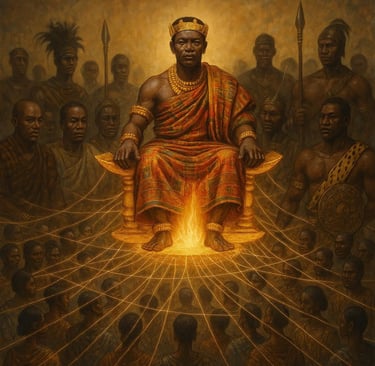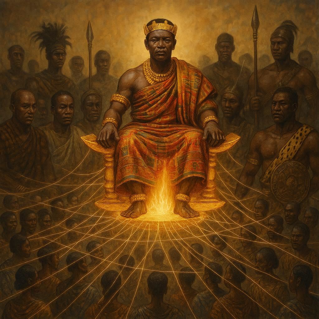 L'Implication Logique : Les actions du roi n'étaient jamais "personnelles". En tant que gardien et incarnation de l'âme du peuple, un acte de sagesse de sa part apportait la bénédiction à toute la nation. Inversement, un acte de trahison ou une faute rituelle de sa part ne le souillait pas seulement lui ; elle souillait l'âme de la nation et mettait en péril la destinée de chaque Ashanti, qu'il l'ait connu ou non. L'individu n'existait pas en dehors de l'identité corporative incarnée par le roi.